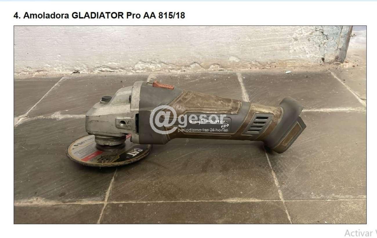 4. Amoladora angular marca GLADIATOR Pro, modelo AA 815/18, color gris.