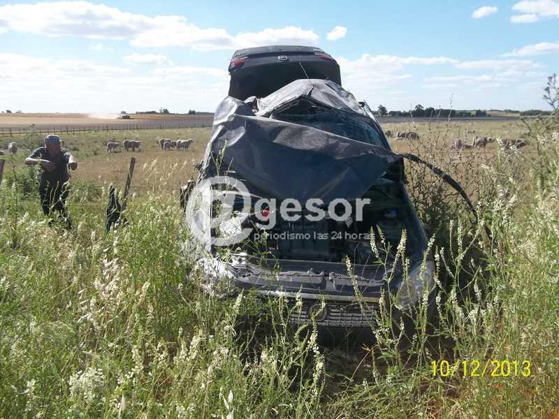 Un espectacular accidente de tránsito se registró en los accesos a la localidad de Pueblo Risso, donde el conductor de un auto perdió el dominio del vehículo y fue a parar a un campo de la zona, resultando con lesiones leves el único ocupante de unos 50 años de edad.