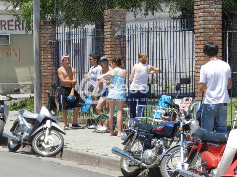 Los primeros en llegar fueron una abuela con su nieto que concurría al Liceo San Miguel y eligió venir a este liceo, estuvieron hasta mediodía, luego una familiar los relevó hasta las 18.00 horas y así sucesivamente se van pasando la posta quienes están haciendo la cola, con un sol que cae a plomo en gran parte del día y hace que algunos dejen la silla playera al sol y ellos busquen guarecerse a la sombra y algunos llevaron sombrilla y se instalaron en el lugar.