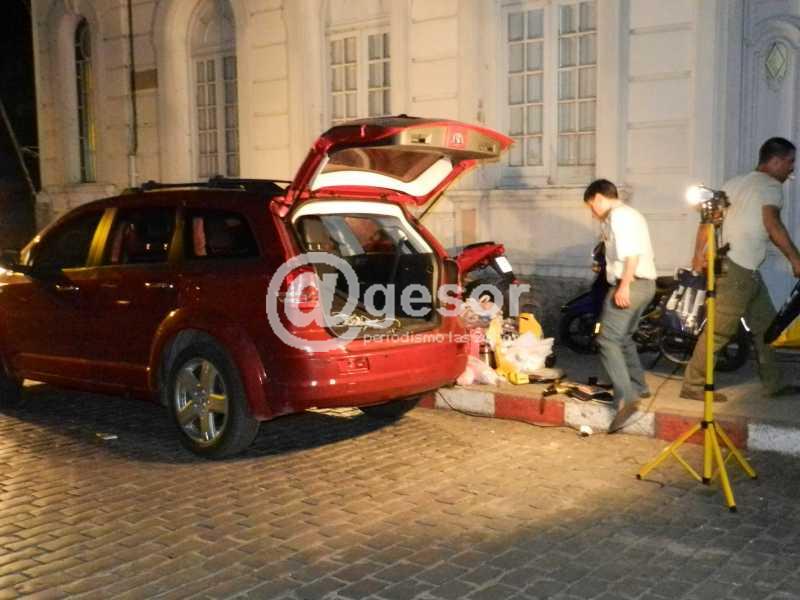 A la medianoche del domingo frente a la sede de la Dirección de Investigaciones, funcionarios de ésta realizaban inspección de vehículo, habiéndose colocado juego de focos para iluminar el lugar, allí fueron retirando pertenencias de los indagados y revisando minuciosamente la camioneta.