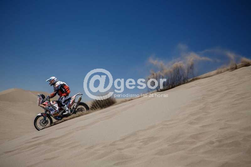 Por suerte la KTM lo ha acompañado y así lo cuenta Laurent "Es de primera, ha soportado la dureza del camino, es un poco pesada para este tipo de caminos, pero seguimos sumando horas que es importante. Sobre el final tuve cuatro caídas tontas, despacio, producto del cansancio, las cubiertas ya no daban más porque aguantaron dos días y ya no contaba con el grip que necesito para este tipo de terreno. Si bien fueron caídas despacio, sin consecuencia ni para la moto ni para mí, igual el tener que levantar la KTM se te hace difícil porque ya no están las fuerzas. Ahora me voy a dormir ya que tengo seis horas para descansar para largar nuevamente. A la moto solamente le vamos a cambiar el embrague por precaución y otras cosas de plástico como el cubre mano y nada más".
