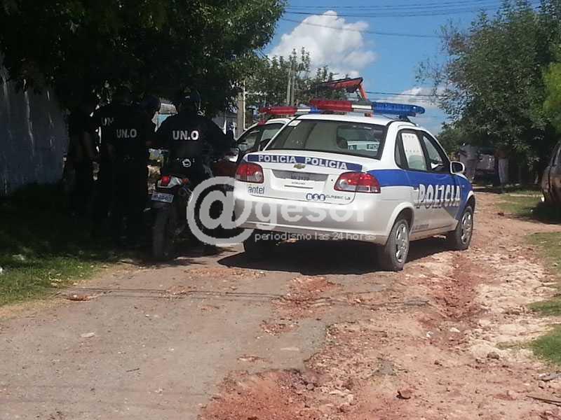 (*) En la fotografía de @gesor puede observarse cuando un hombre era detenido en la zona sur de Mercedes, en las viviendas frente a la cancha de Rovers.