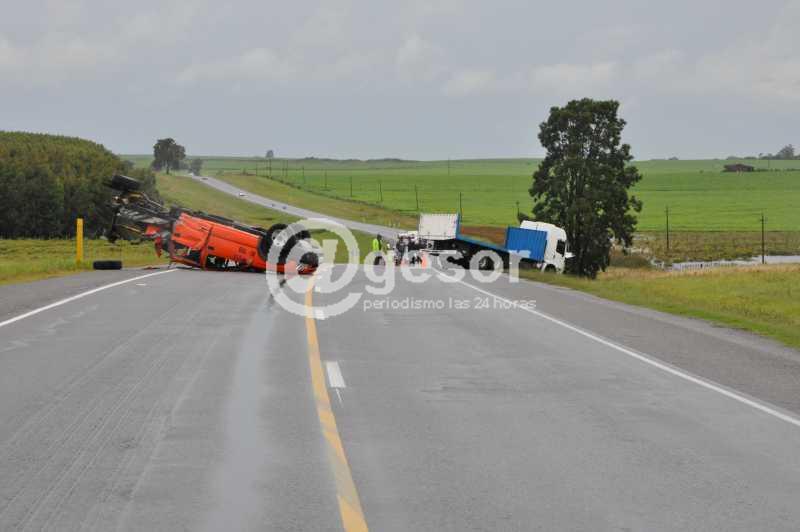 En las primeras horas de la tarde de este lunes ocurrió colisión entre camión Volkswagen mod. 24250, matrícula ATP 3264 que circulaba de Oeste a Este (Mercedes - Montevideo) guiado por José Raúl Echane de 32 años, domiciliado en Canalones, de la empresa Transportes Carballo y la camioneta de UTE que iba en sentido contrario Este a Oeste (Montevideo - Mercedes) Chevrolet C 10 matrícula MAD 9648 conducida por Oscar César De León de 59 años, domiciliado en San José.
