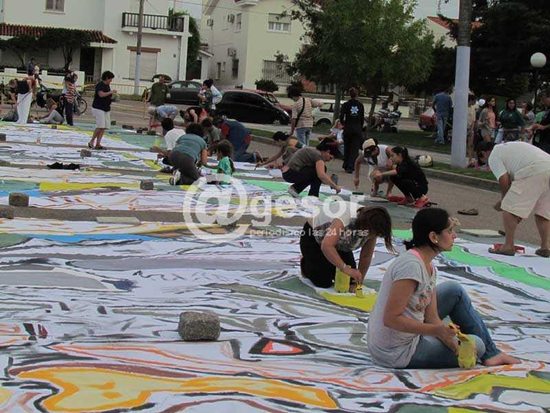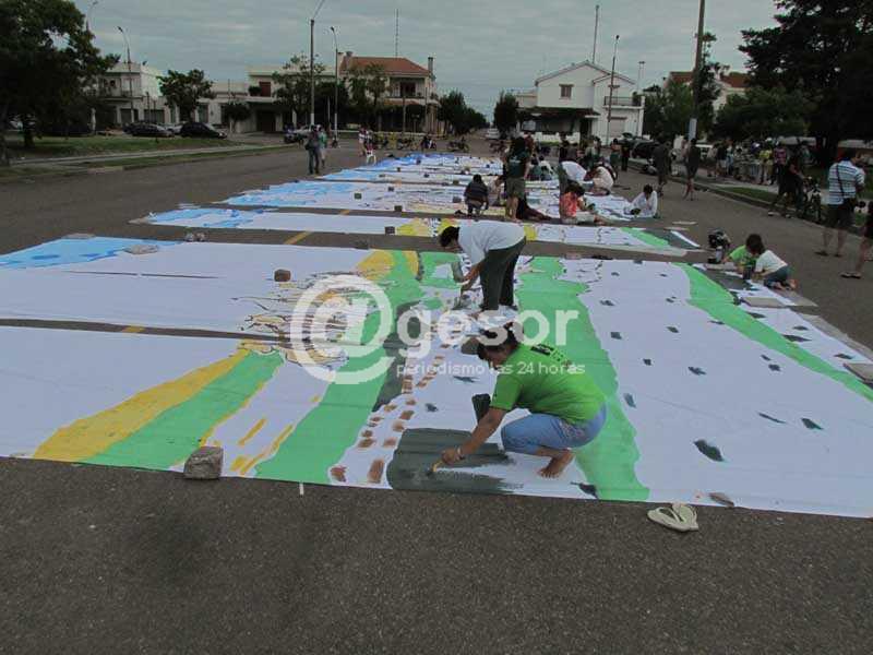 Este mural, pintado en tela ya fue dibujado por lo que este sábado, a partir de las 18 horas se realizará una actividad donde todo aquel que quiera participar podrá participar de la tarea de pintarlo. Por ese motivo se conformaron equipos de trabajo, delimitándose tareas.