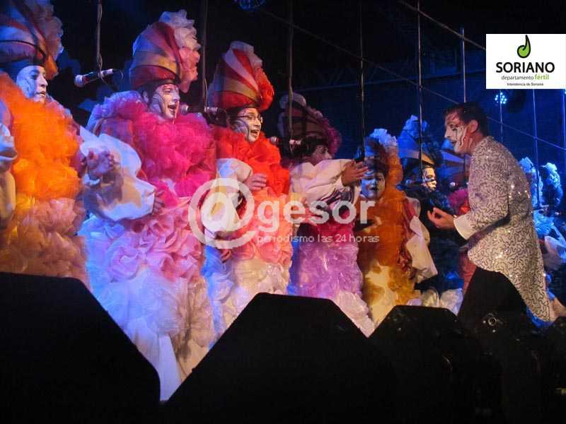 Con su característico coro, que una vez más se mostró potente como la murga acostumbra, Jardín del Pueblo llegó a Mercedes ofreciendo un espectáculo muy bien llevado a lo largo de toda la actuación. Con dura crítica y humor, el conjunto sanducero reivindicó su primerísimo nivel, prometiendo dar lucha por la consagración en este 2014, como lo hizo en el año anterior y en otras tantas ocasiones en el carnaval de Soriano. Los sanduceros volvieron a mostrar un espectáculo de categoría, con varios cambios de vestimenta durante la actuación y con el clásico dinamismo de cada año.