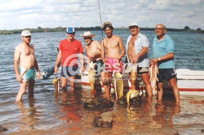 Foto: Anito Moranti, el primero de derecha a izquierda, durante una jornada de pesca en el río Negro.