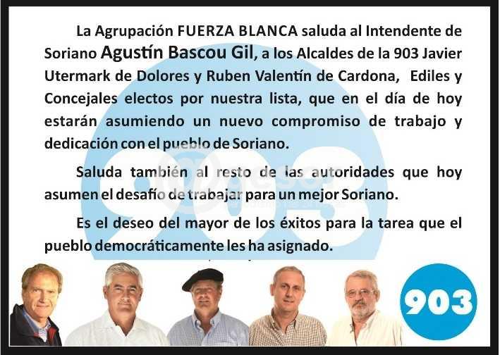 Mediante la presente los abajo nombrados, integrantes de la Agrupación Fuerza Renovadora, Lista 703 del Partido Nacional, queremos informarle a la población en general y en especial a quienes nos apoyaron con su voto, que las decisiones tomadas por el Sr. Edil Emanuel Borges, desde su inicio en el cargo, han sido totalmente inconsu...