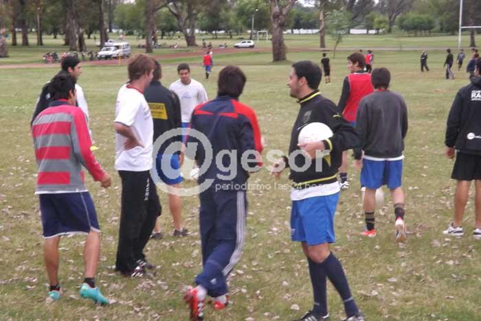 Al continuar su preparación para enfrentar a Trinidad el viernes por Copa nacional de la OFI, las selecciones de fútbol de mayores y juveniles de Mercedes practicaron este martes en la cancha de rugby del parque Gernika.